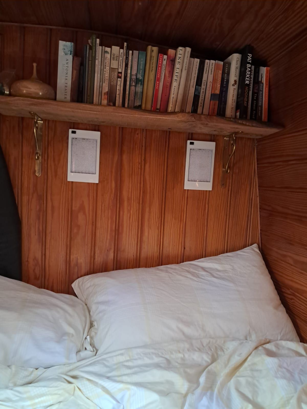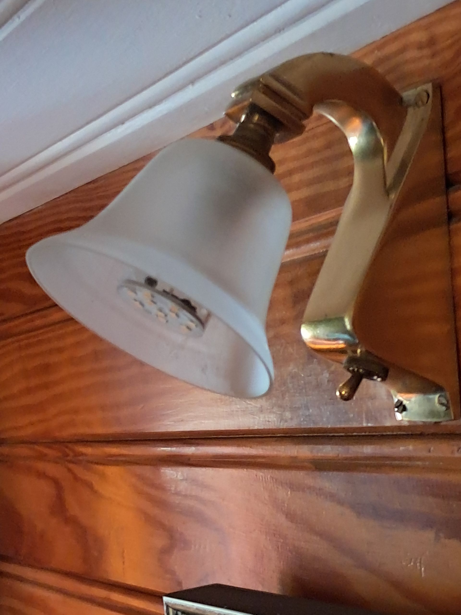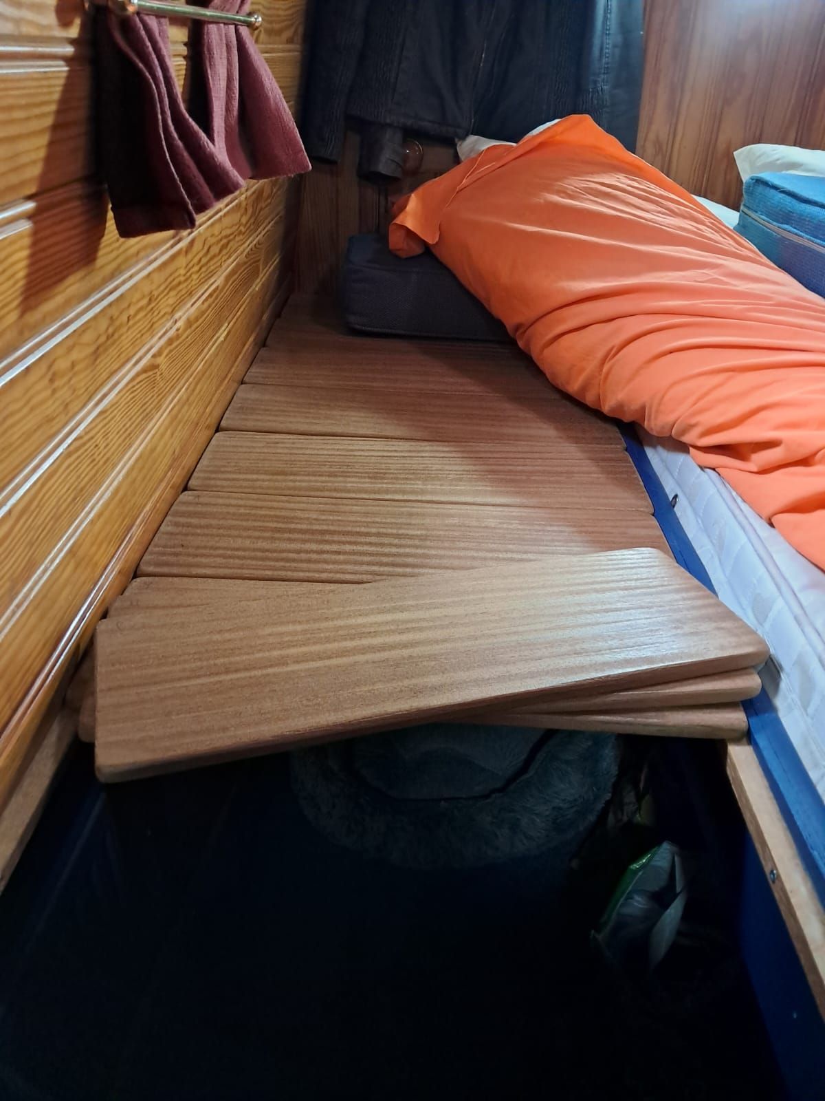 6 brass portholes & all internal brass fittings, cleaned & lacquered 2020. Bespoke pine porthole liners, removable, made 2011.